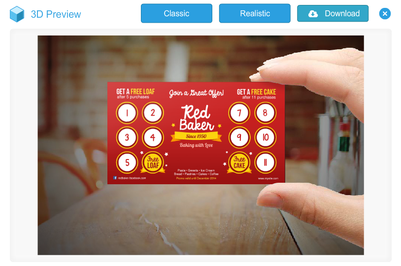 be able to preview your designs (classic and realistic 3D previews) in